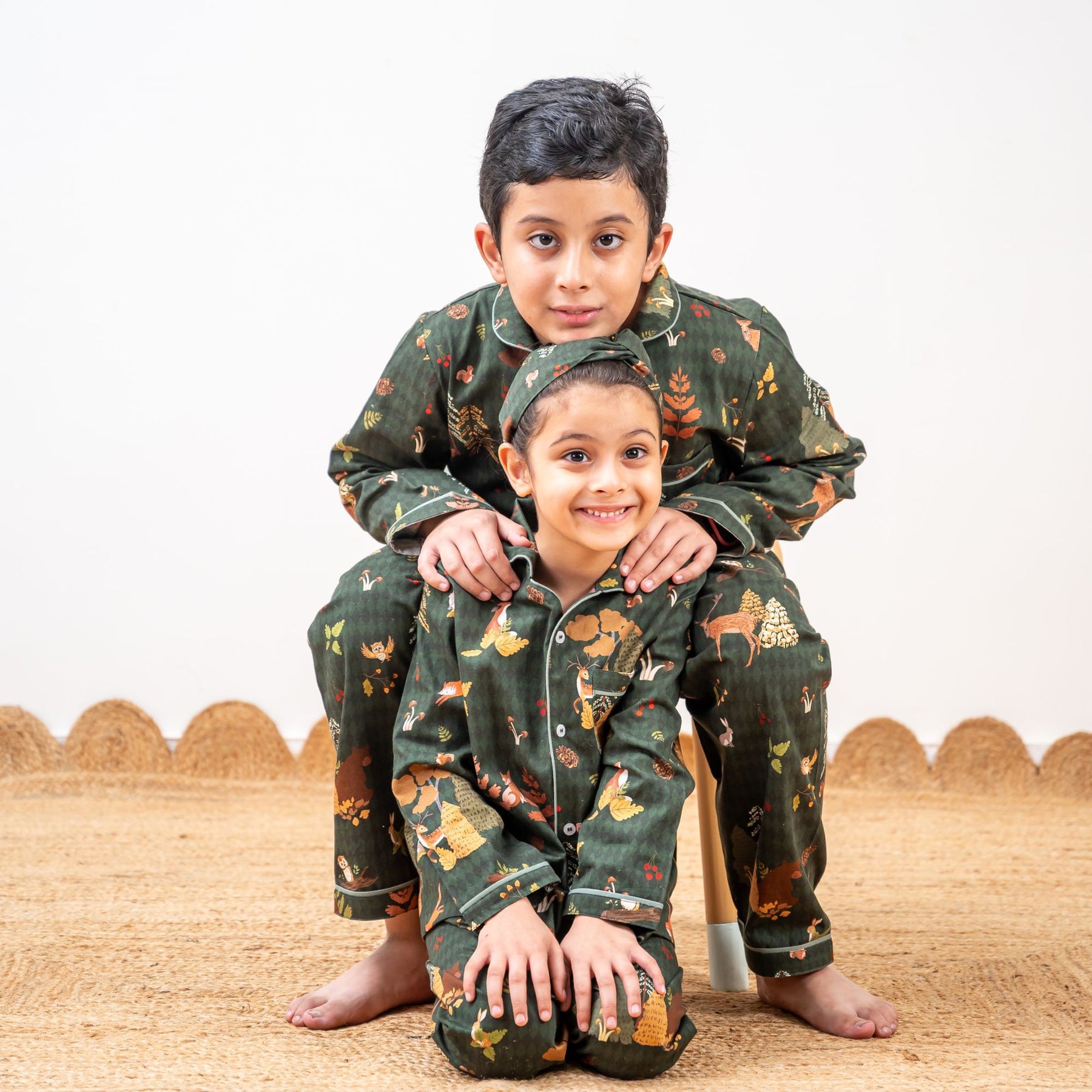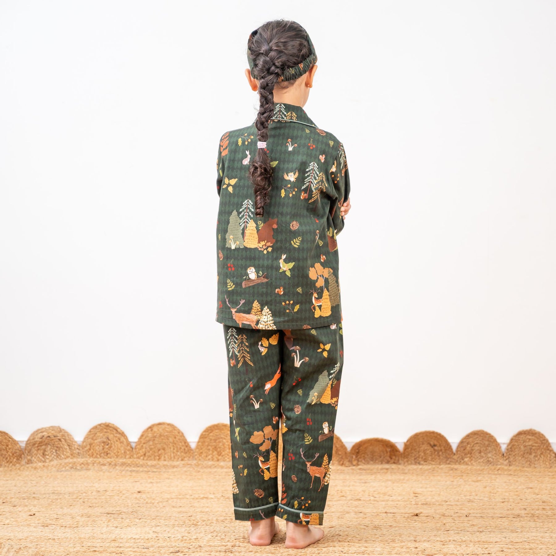 Woodland Wonderland Winter Cotton Nightsuit- Girls