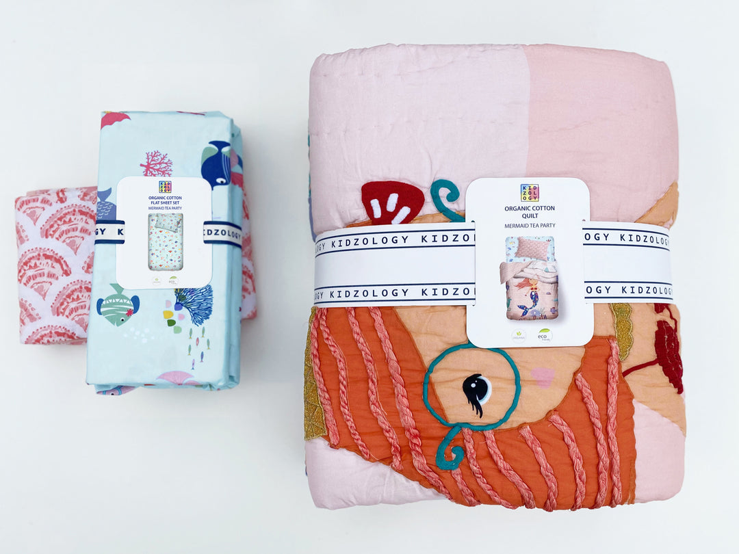 • Handcrafted by expert artisans, each quilt is meticulously quilted to form fun patters around motifs. Organic Cottton Filling The heavy cotton filling is comfortable in the summers in your air conditioned environment and warm in the winter. We have given our quilts a soft wash for added comfort for your kids.